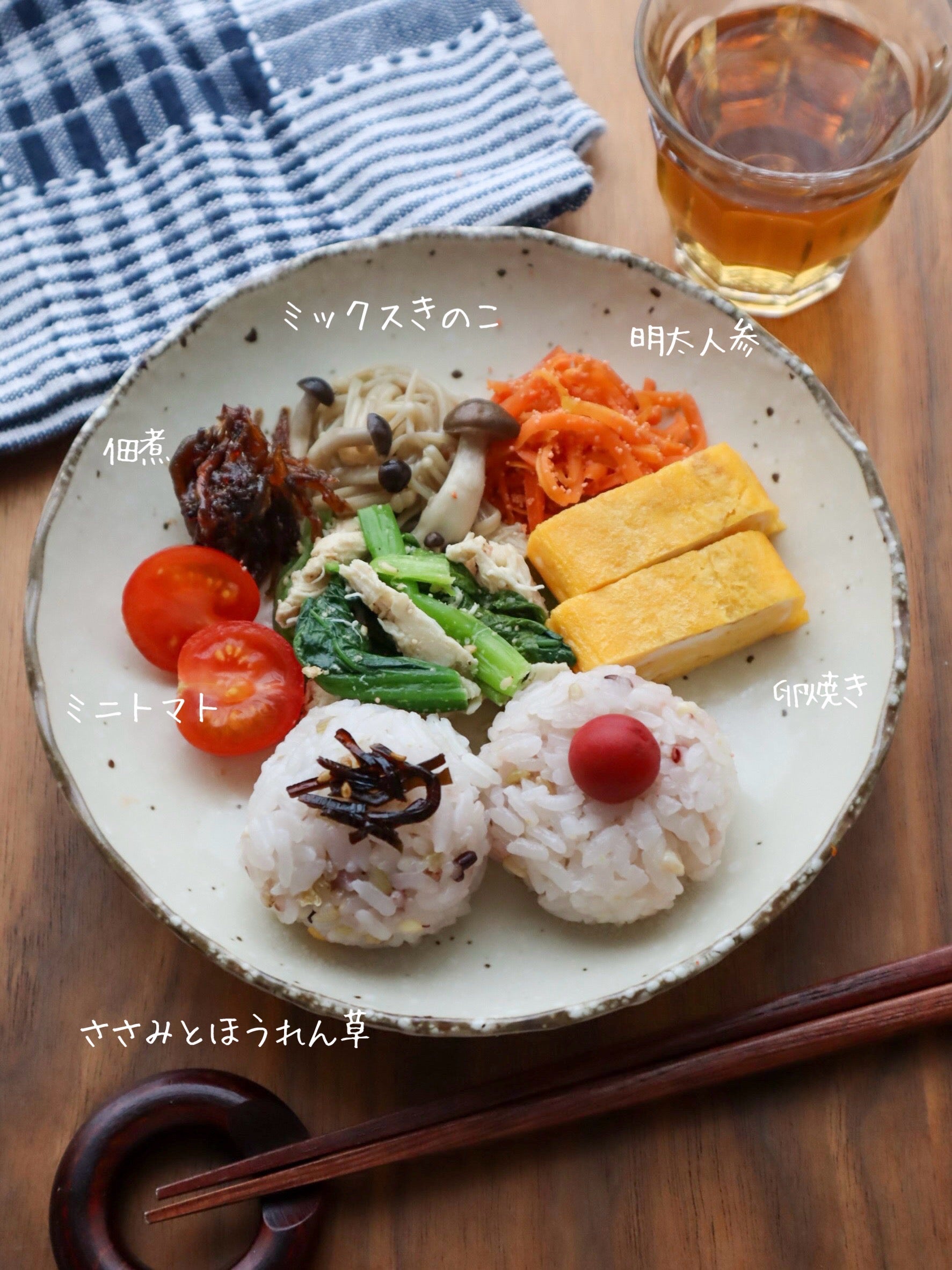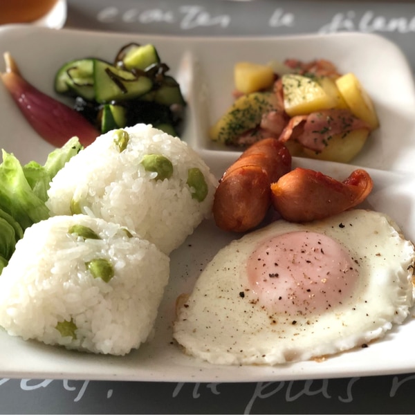 ワンプレート朝ごはん~おにぎりの朝ごはん~マーマレードキッチン♪。