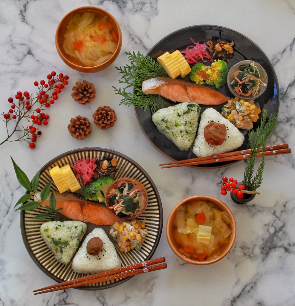 鮭と大葉のまんまるおにぎりでワンプレート朝ごはんの写真・画像素材-Snapmart スナップマート。