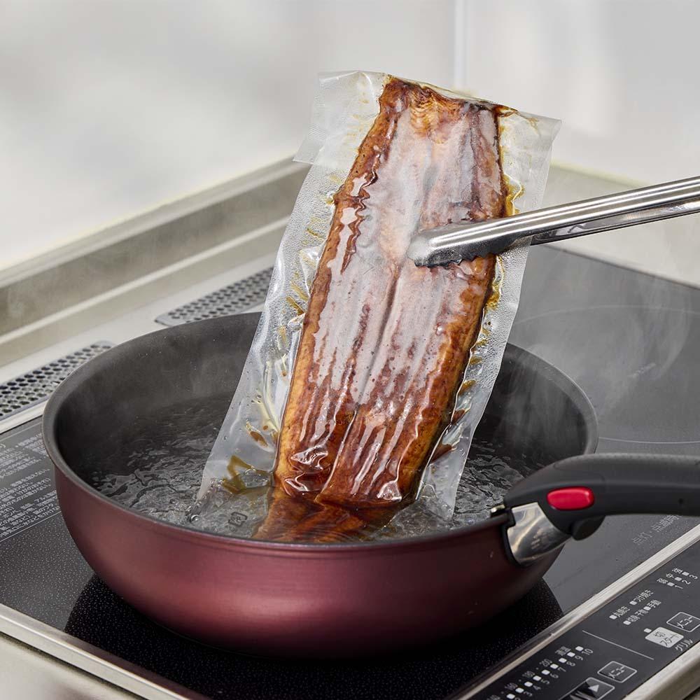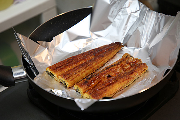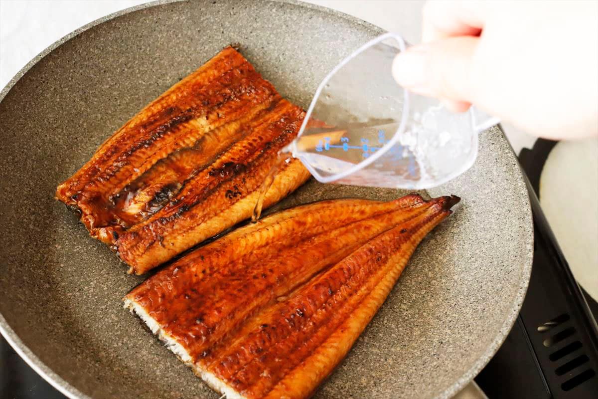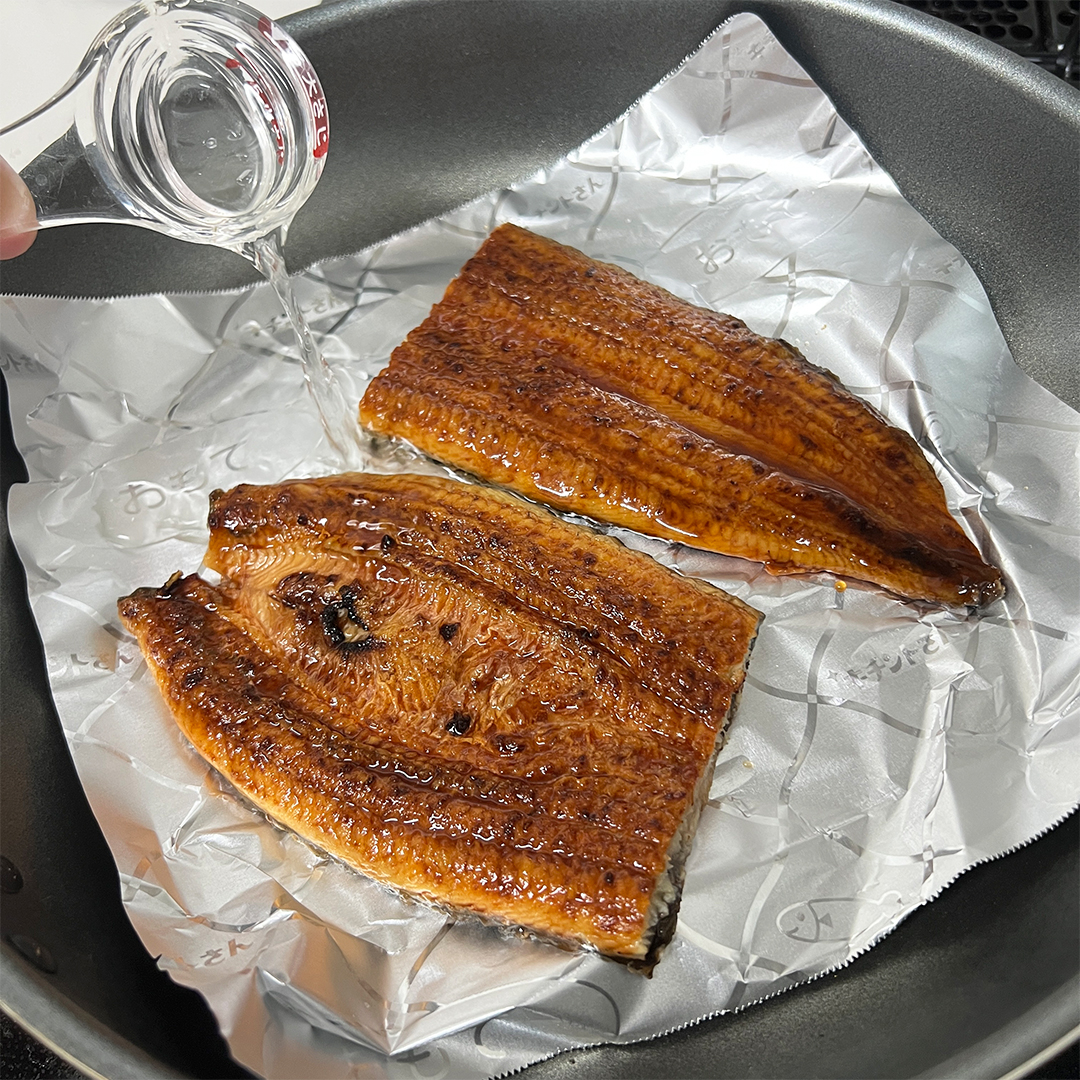 冷凍鰻のフライパンでふっくら温め。