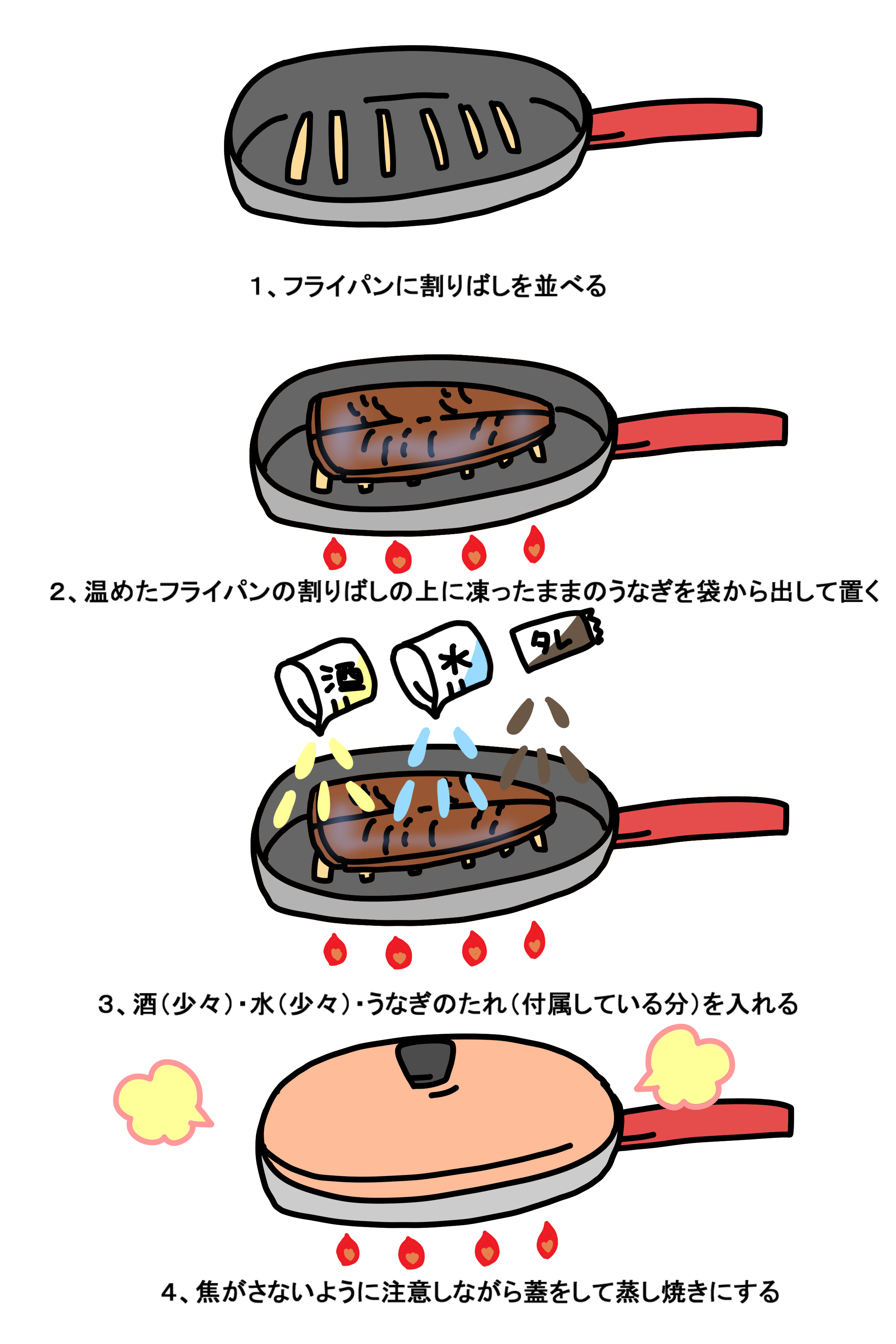 フライパンを使った冷凍うなぎを美味しく食べられる温め方のコツ。
