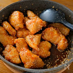 つくおき on X: "七味唐辛子のピリッとした辛味と、コクのある甘辛だれの組み合わせが絶妙においしい!鶏もも肉の名古屋風から揚げフライパンで 揚げ焼きにした唐揚げに甘辛タレをジュワッと絡めます。 おつまみとしてもオススメです。ハイボールとかめっちゃ合い。