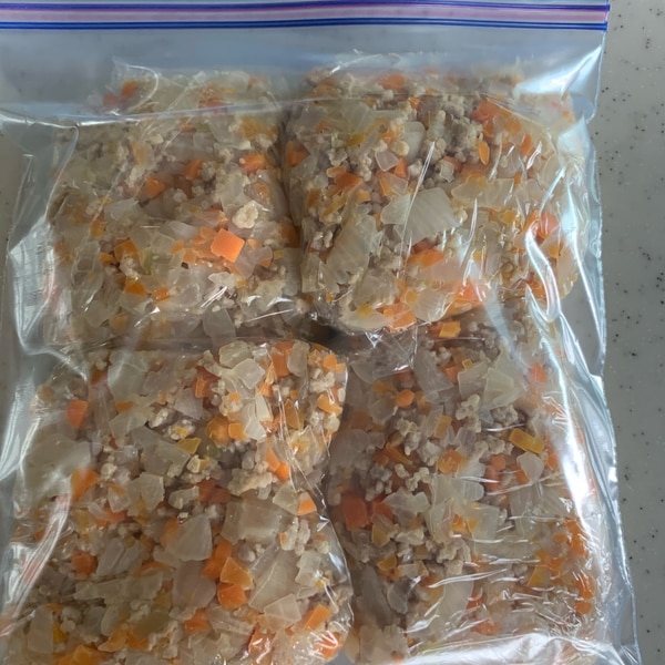 冷凍保存!玉ねぎ、ニンジン、豚挽肉炒め。