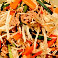 焼きそばソースの粉末で簡単野菜炒め。