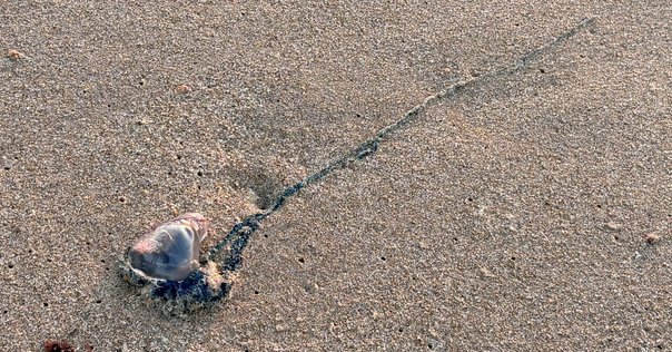 危険⚠生物!!!!!見つけても絶対に触らないで下さい!! カツオノカンムリ カツオノエボシ 危険 毒。