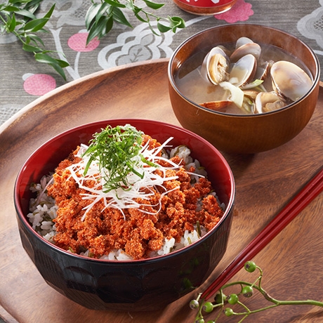 明太しらすくずし奴丼鰹節 かつおぶし ・だしの素・つゆのマルトモ。
