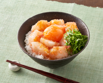 まる生おろし明太ほたて丼レシピ ヤマサ醤油株式会社。