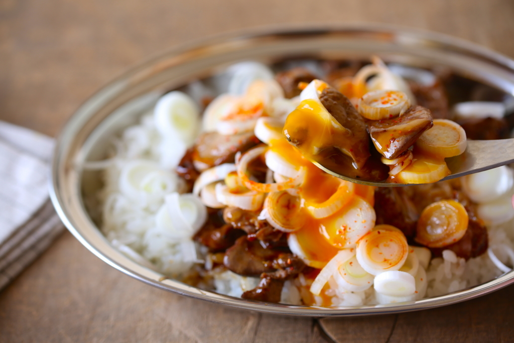 にらの香りと明太子の辛さがとにかく旨い!『ニラ明太丼』。