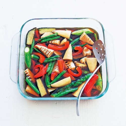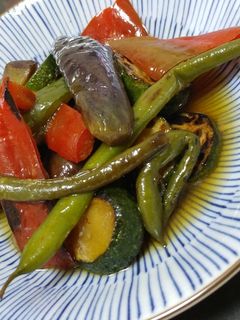 夏野菜の揚げびたし栗原はるみさんレシピ。