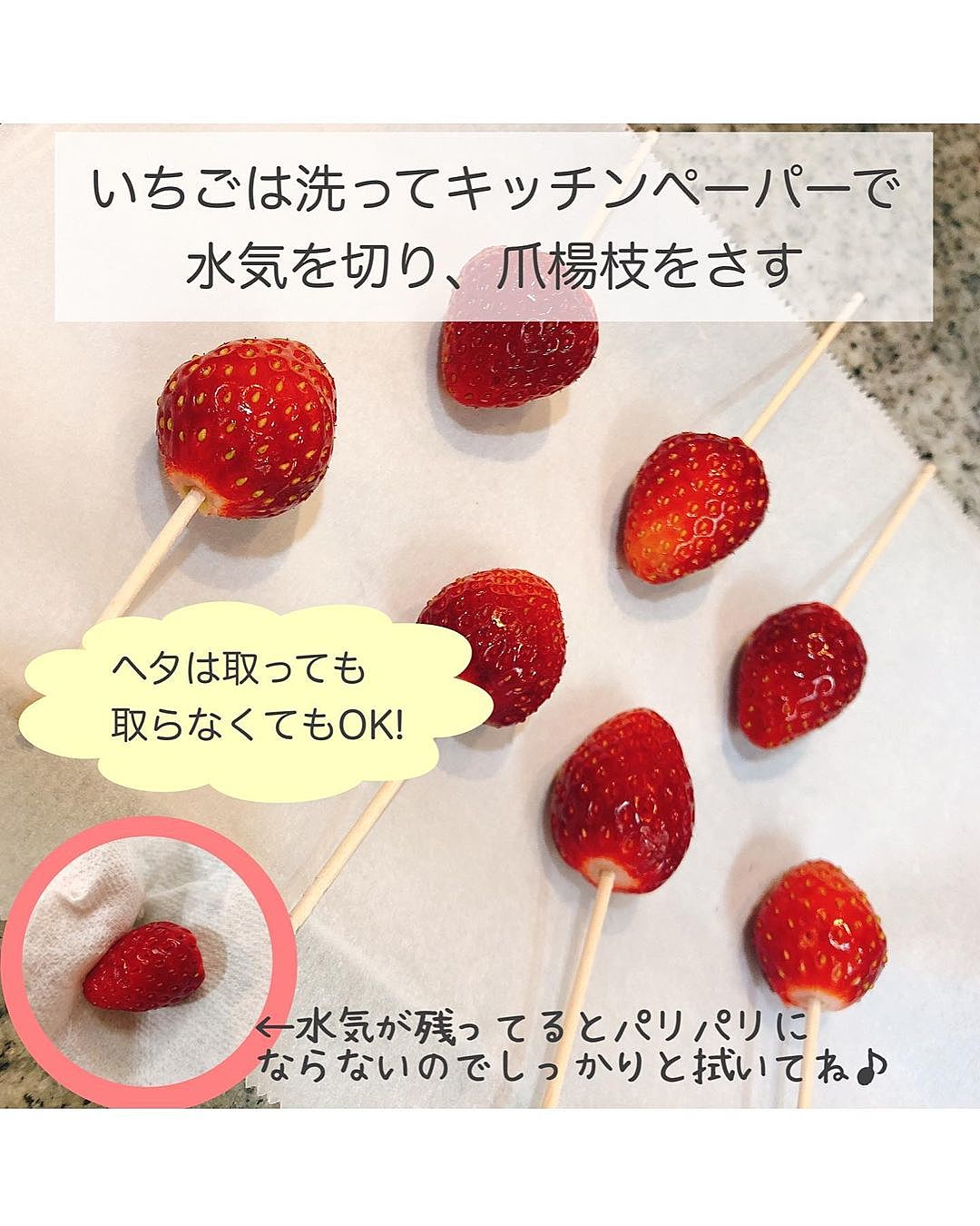材料3つで超簡単! 絶対失敗しない!カリカリの『いちご飴』を作るコツを詳しく解説♪ - てぬキッチン。