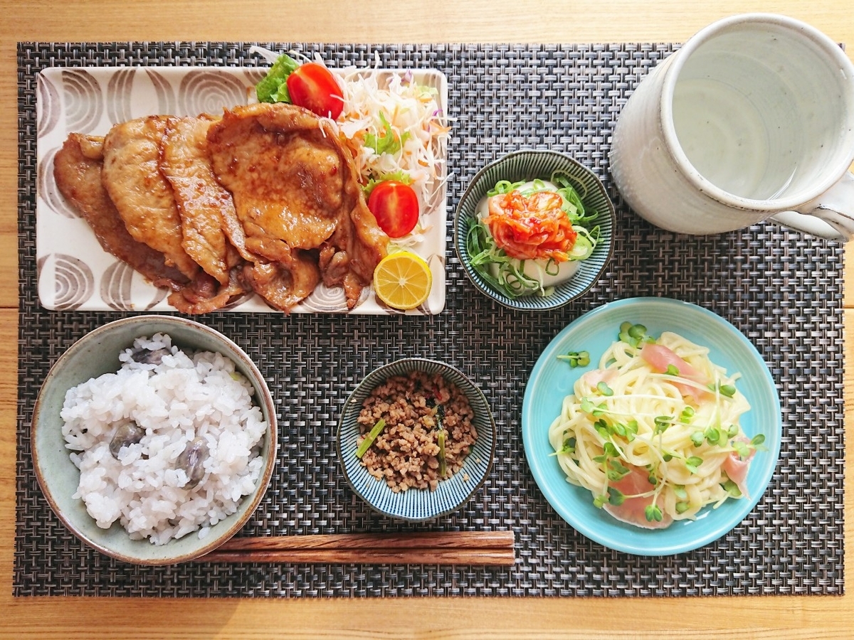 旬の黒豆ごはんと豚肉の生姜焼き定食 晩御飯献立- おうちごはんストーリ。