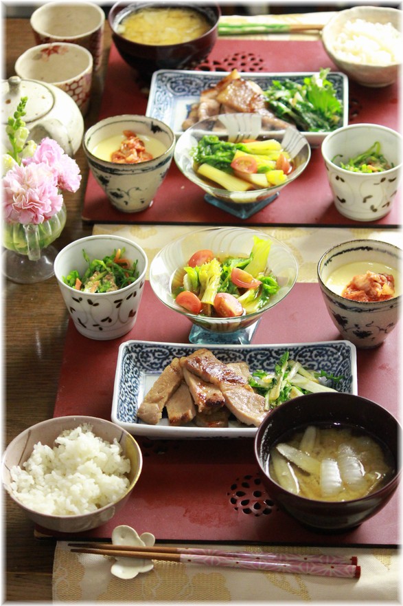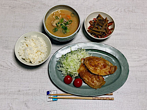 豚肉のしょうが焼きと、たけのこの煮物の夕飯献立おとほしろぐ。