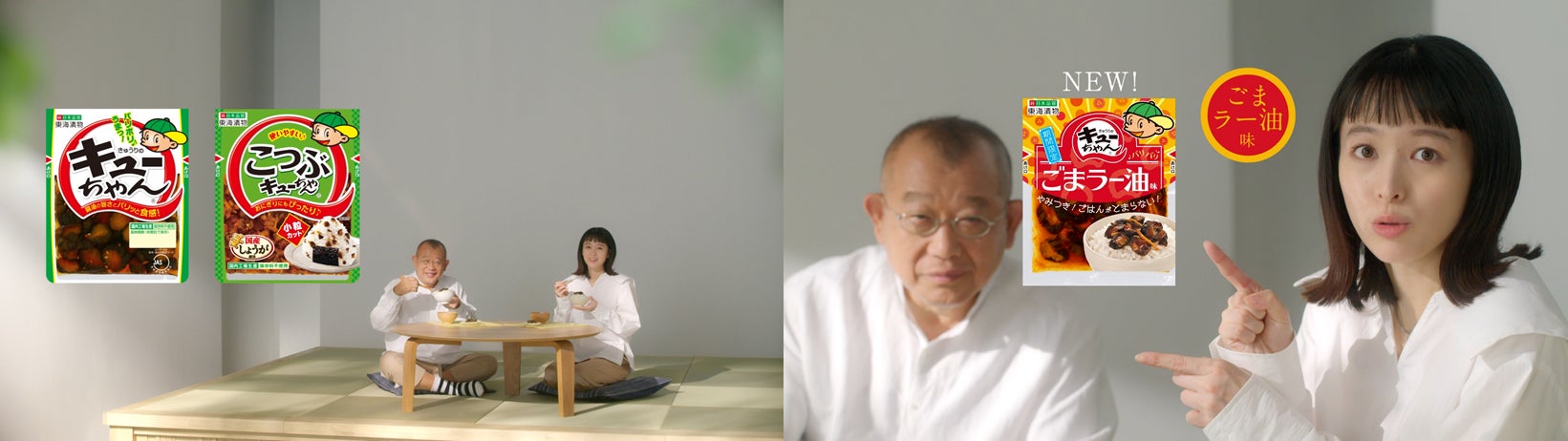 キューちゃんをほおばる清野菜名さんの幸せいっぱいの笑顔に注目!メイキングでは米粒を口元につけてしまうおちゃめな姿も「きゅうりのキューちゃん」新TVCM2月12日 月 よりスタート東海漬物株式会社のプレスリリース。