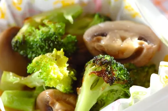 ポリ袋で「ブロッコリー」に薄力粉をつけて焼いてコンソメで味付けするだけ!「やみつきブロッコリー」。