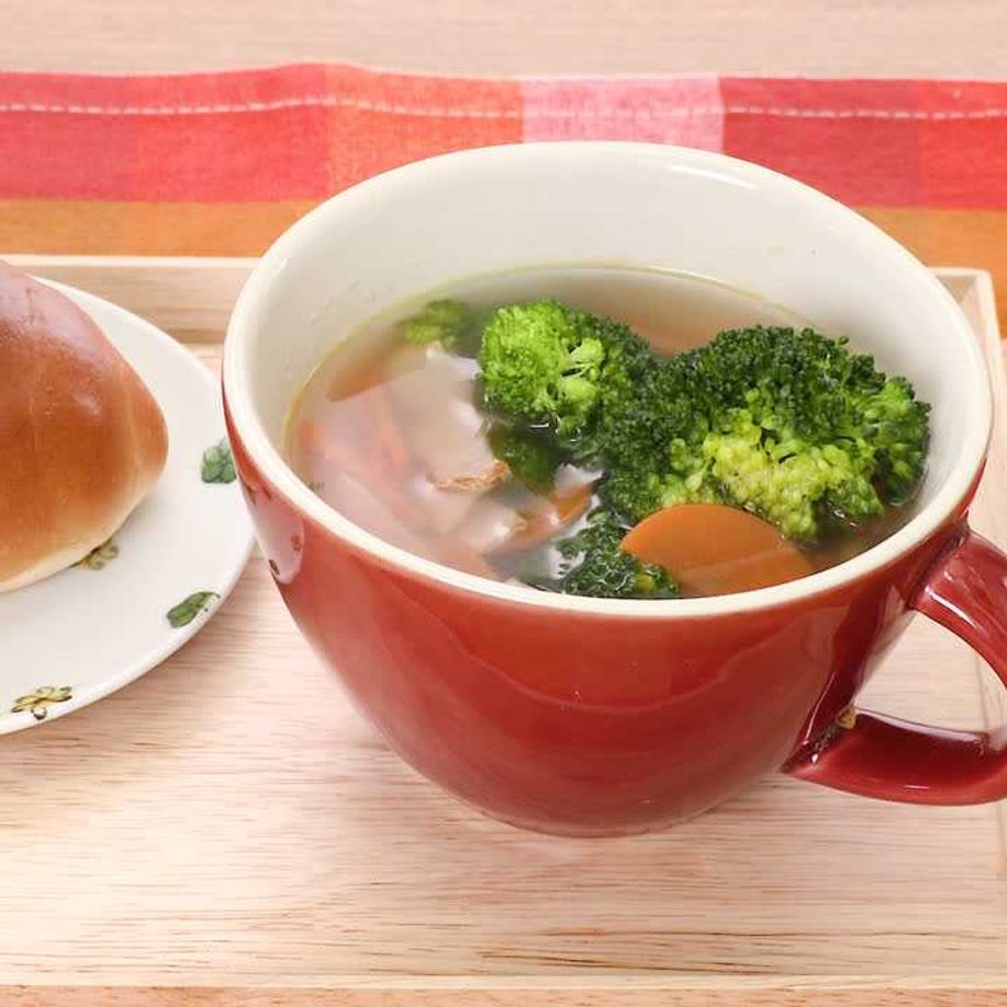 コンソメ仕立ての! ブロッコリーとにんじんのスープ。