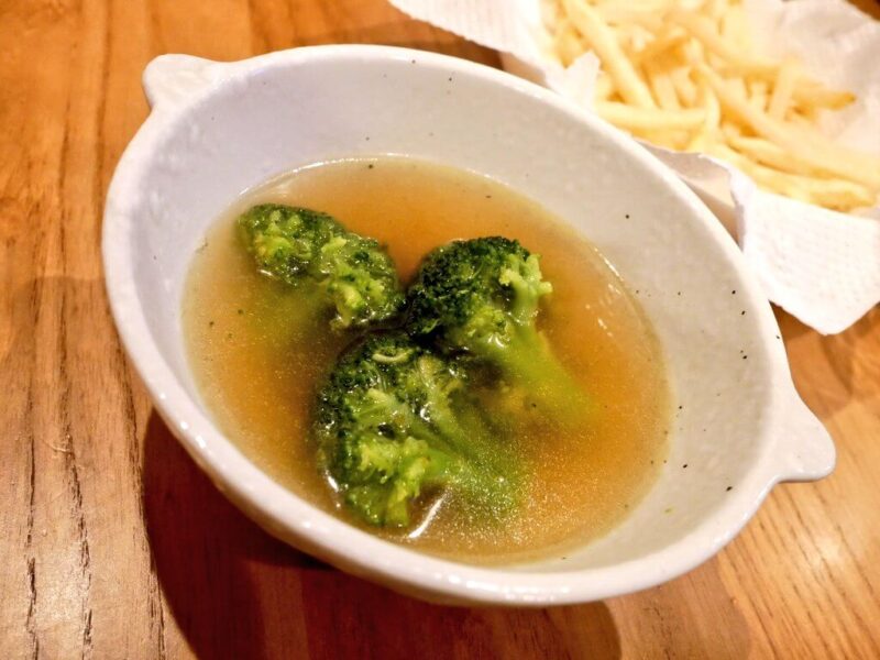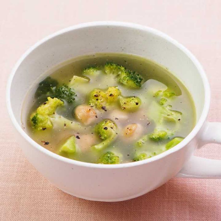 2品で大満足♪ ブロッコリーとひよこ豆のコンソメスープ。