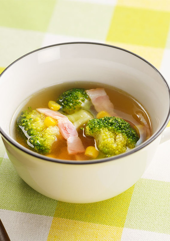 彩り鮮やか! ブロッコリーとトマトのコンソメスープ。