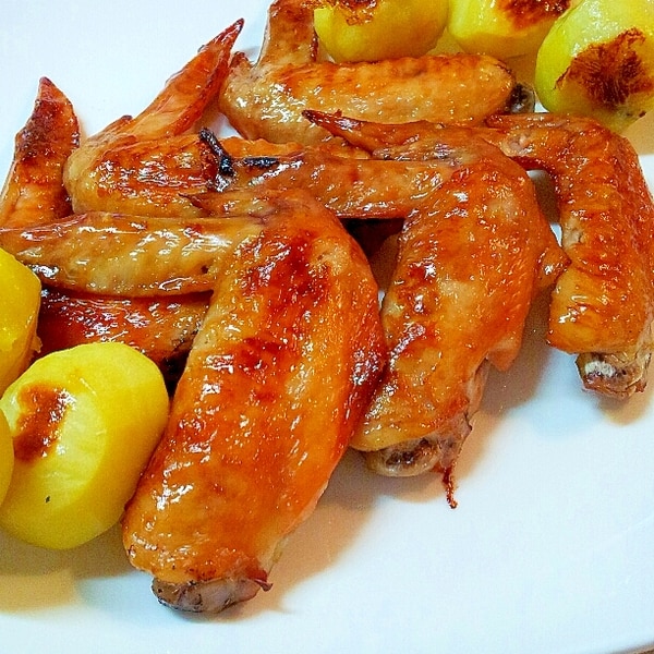 手羽先と新じゃがいものカリカリ☆オーブン焼き♪。