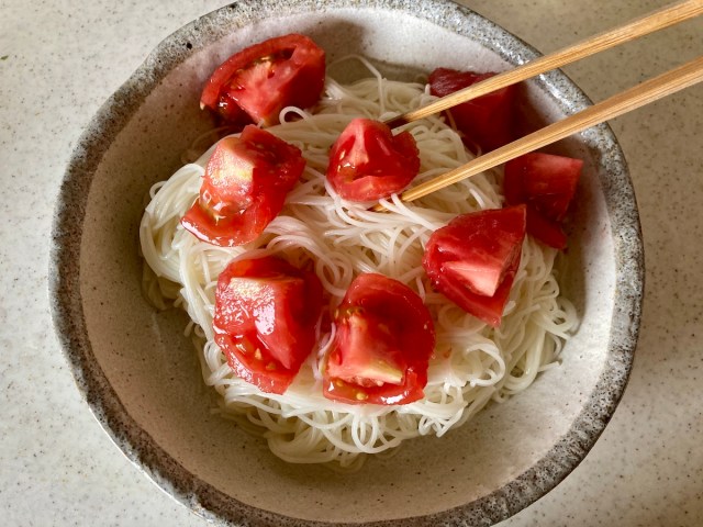 簡単キャンプ飯 「冷凍トマトとツナのぶっかけそうめん」がヒンヤリ激ウマ! いつもの味に飽きたら試してみるべし!ロケットニュース24。