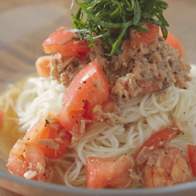 そうめんがイタリアンに変身!「ツナとトマトの冷製カッペリーニ風そうめん」。