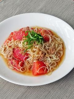 そうめんでパスタ☆ツナとトマトのカッペリーニ風。