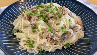 在宅ランチ♪白だしとごま油香るツナ缶そうめん。