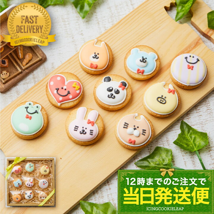 楽天市場当日発送便:ちびクッキーギフト <9枚入> アイシングクッキー ブタ イヌ 犬 クマ ネコ 猫 スマイル ハート ウサギ パンダ カエルギフト プチギフト クッキー 動物 お菓子 スイーツ かわいい ギフト かわいいお菓子プレゼント アイシングクッキーleap。