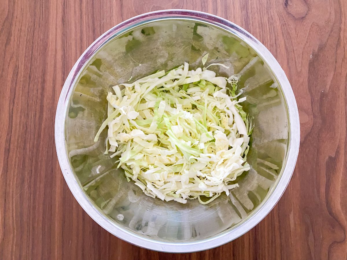 簡単お好み焼きの作り方千切りキャベツ使用。