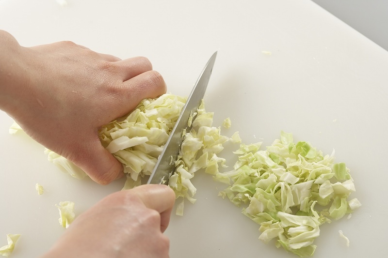 キャベツの切り方 初心者の方でも、お好み焼き用にキャベツを手際よく切る方法を紹介しています。