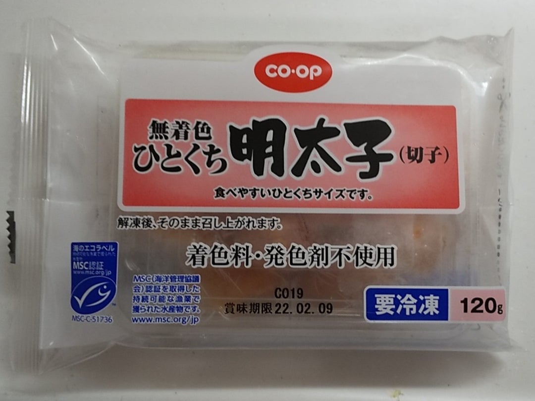 無着色ひとくち明太子 切子週一コープデリ生活。