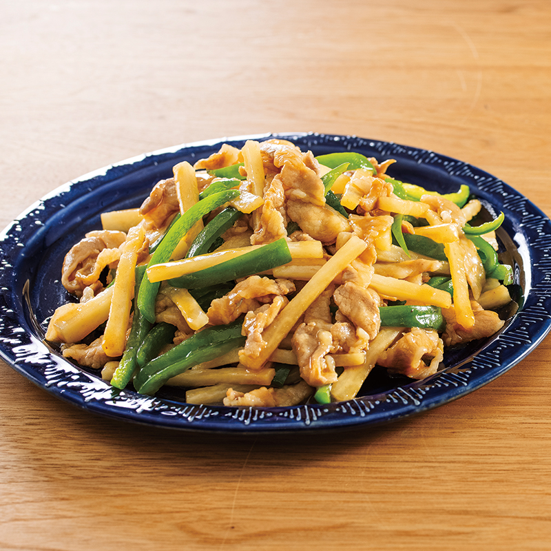 ボリューム満点! 豚肉と長芋のオイスター炒め。