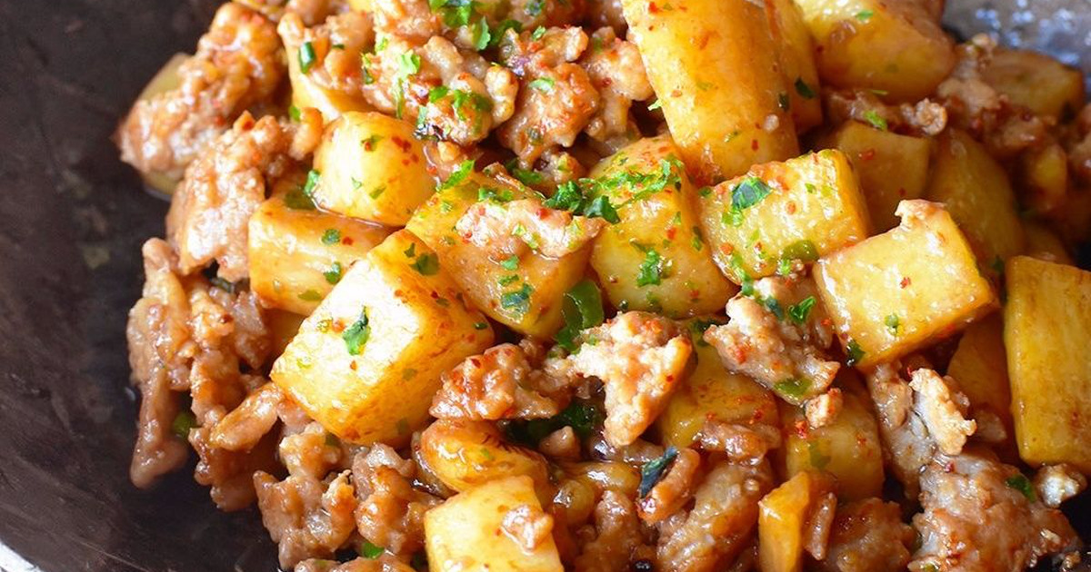 こってりまろやか「豚バラと長芋のオイスター炒め」。