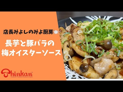 店長みよしのみよ厨房!, 今回は「長芋と豚バラ肉の梅オイスターソース」です。, 材料 2~3人前 , 長芋・200~250g前後,豚バラ肉・100~150g, しめじ・40g, 梅肉・大さじ2, オイスターソース・大さじ2, 料理酒・大さじ2, 砂糖・大さじ1 2,醤油・大さじ1 2, おろしにんにく・小さじ1」, #長芋#山芋#梅#さっぱり#オイスター,。
