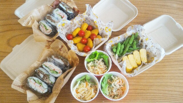 100均セリア使い捨てお弁当箱容器のお洒落な詰め方コツ行楽弁当ピクニック。