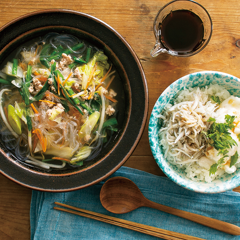 たっぷり野菜と春雨の具沢山スープ」、しらすとろろ丼 2人分 だいどこログ 生協パルシステムのレシピサイト。