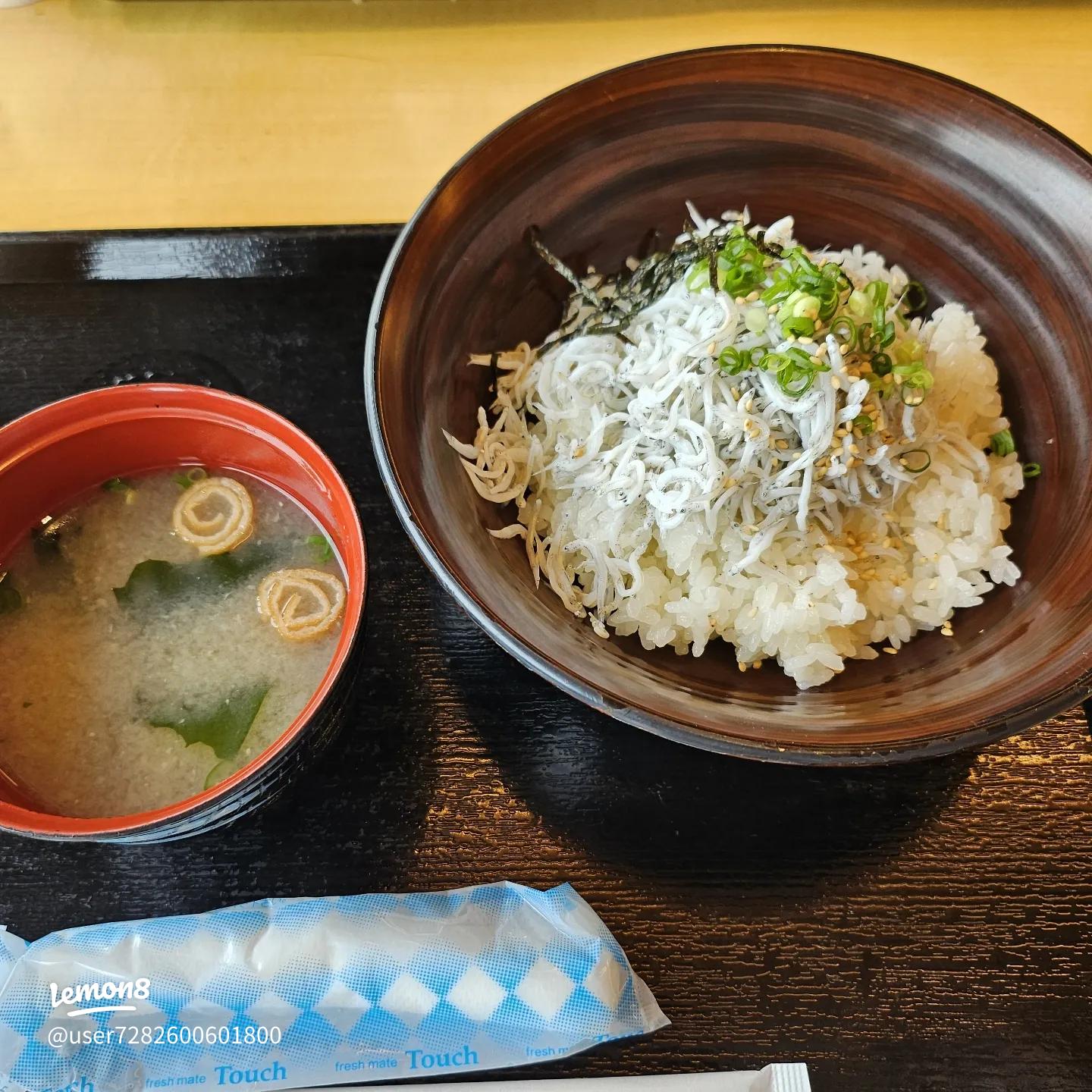 4️⃣ なんでこんな名前にしたんや的な食堂へ。 名物のしらす丼は凄いボリューム!でも本当の目的はしらす丼ではなく、わさびスープなのであった。しらす は加太で獲れたものではないらしいが、スープの出汁になっている鯛は、この加太で獲れたものなのである!葉ワサビを。