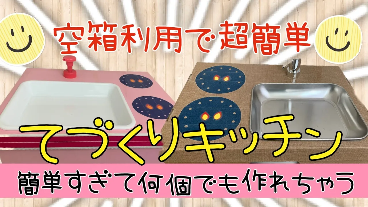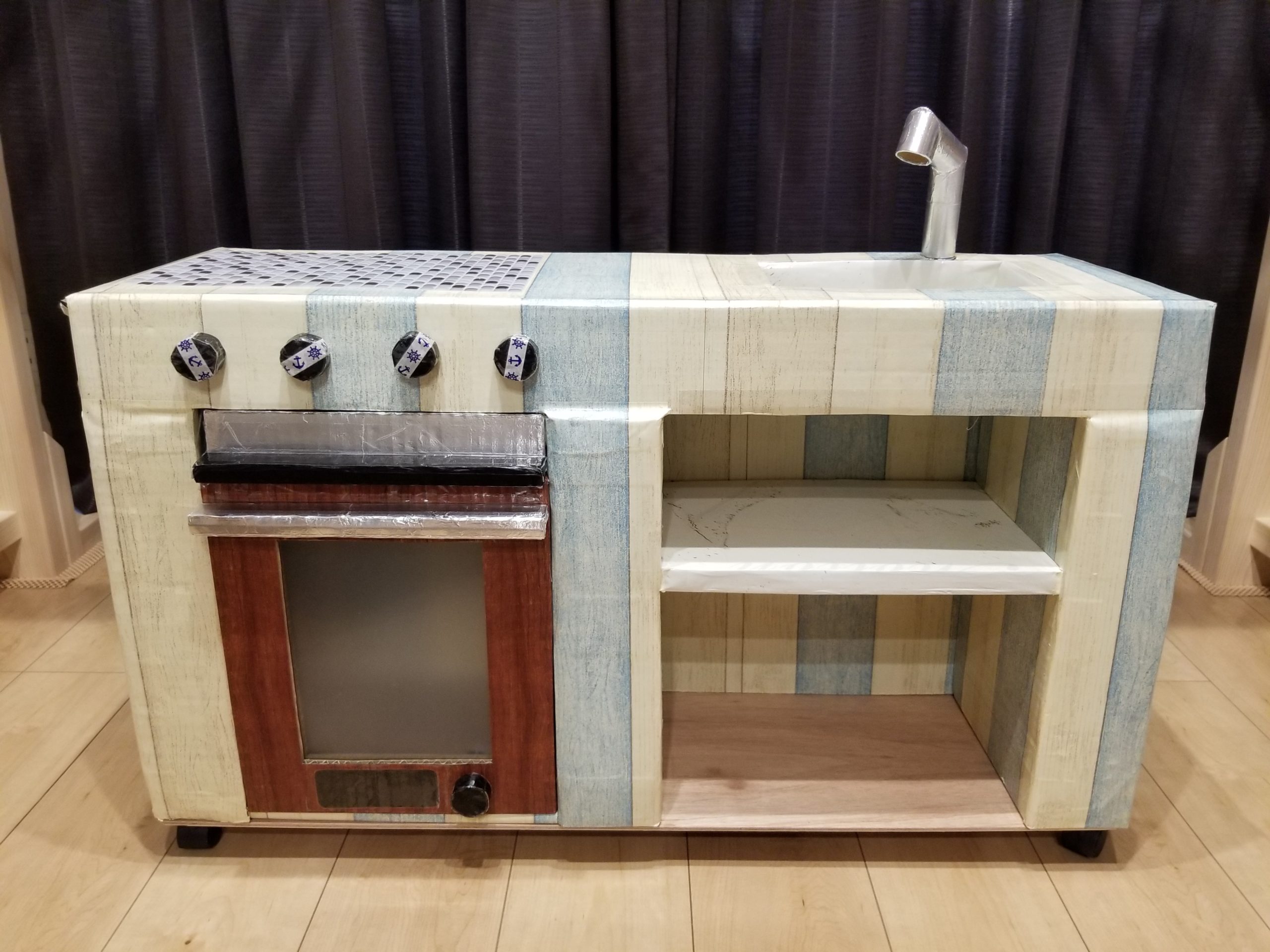 ダンボールキッチンの作り方〜パーツ100均グッズで楽しく手作り+。*・♪。
