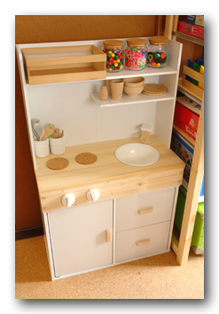 1歳からのごっこ遊びに木のままごとキッチン – なかよしライブラリ。