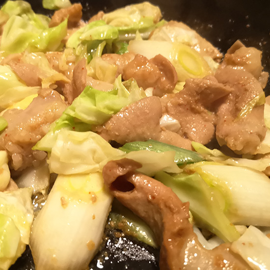 白モツとキャベツのみそ炒めOlive Oil Life オリーブオイルライフ。
