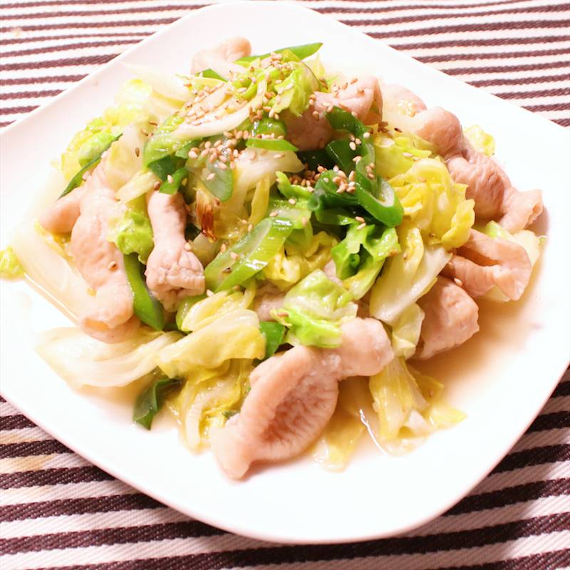 ビールがすすむ!キャベツのごま塩ホルモン炒め。