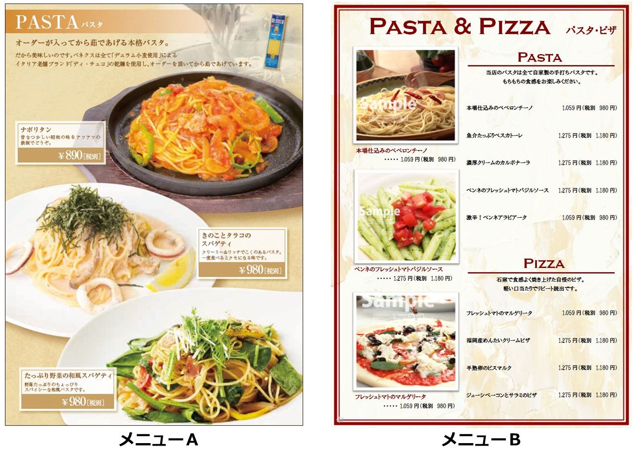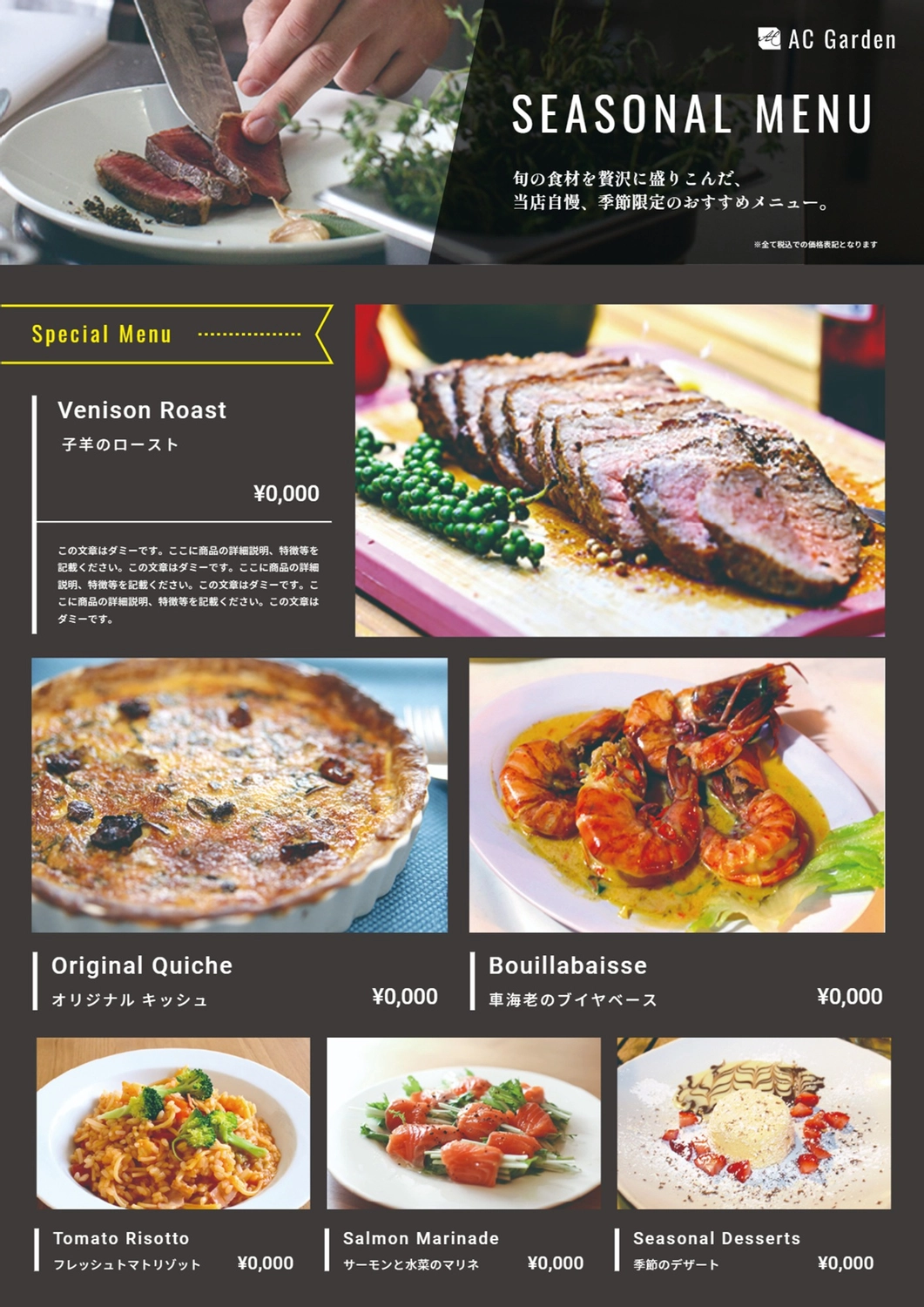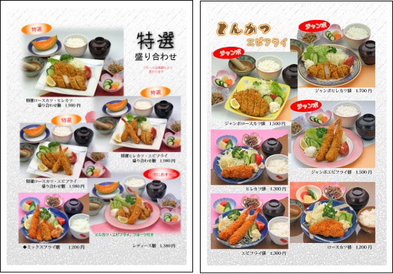 メニュー表作成の無料テンプレート・デザインサンプル - ネット印刷グラフィック。