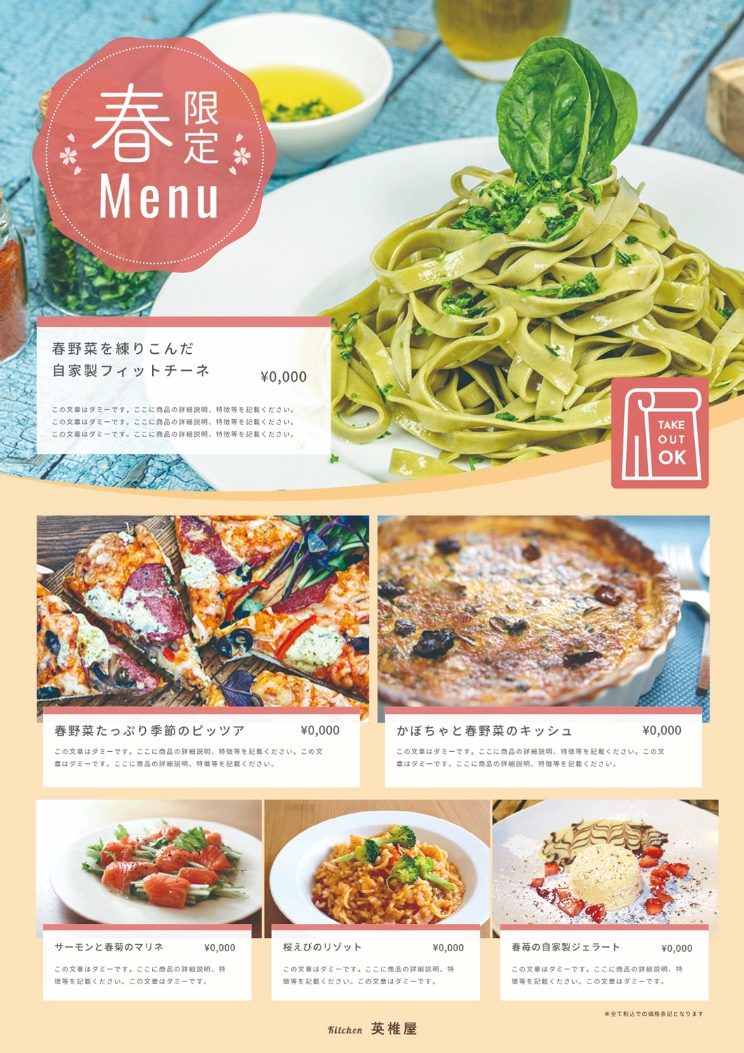 飲食店の春の限定メニュー表飲食店のチラシデザイン作成・印刷なら飲食チラシ制作.com。