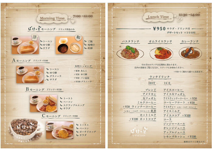 Cafe&Lunch ぽけっとメニュー表デザイン 名古屋のホームページ制作会社株式会社ZoDDo。