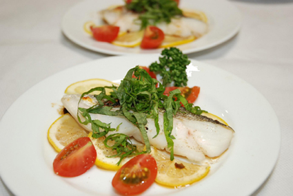 白身魚の香草焼きの献立 副菜:セロリのハーブマリネ 、汁物:ミネストローネ風さつまいものスープ野菜 献立・メニュー 味の素パーク たべる楽しさを、もっと。
