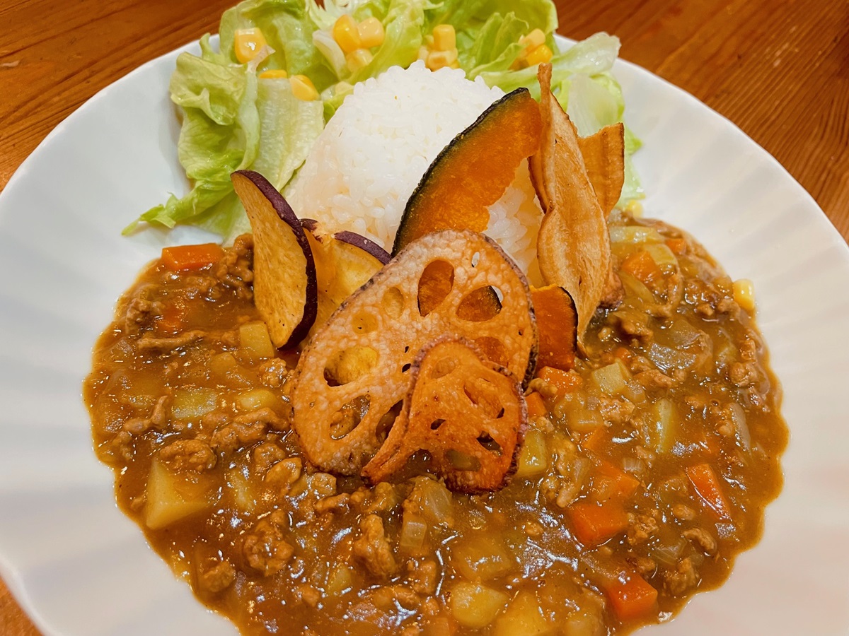 ココナッツオイルの野菜チップス。