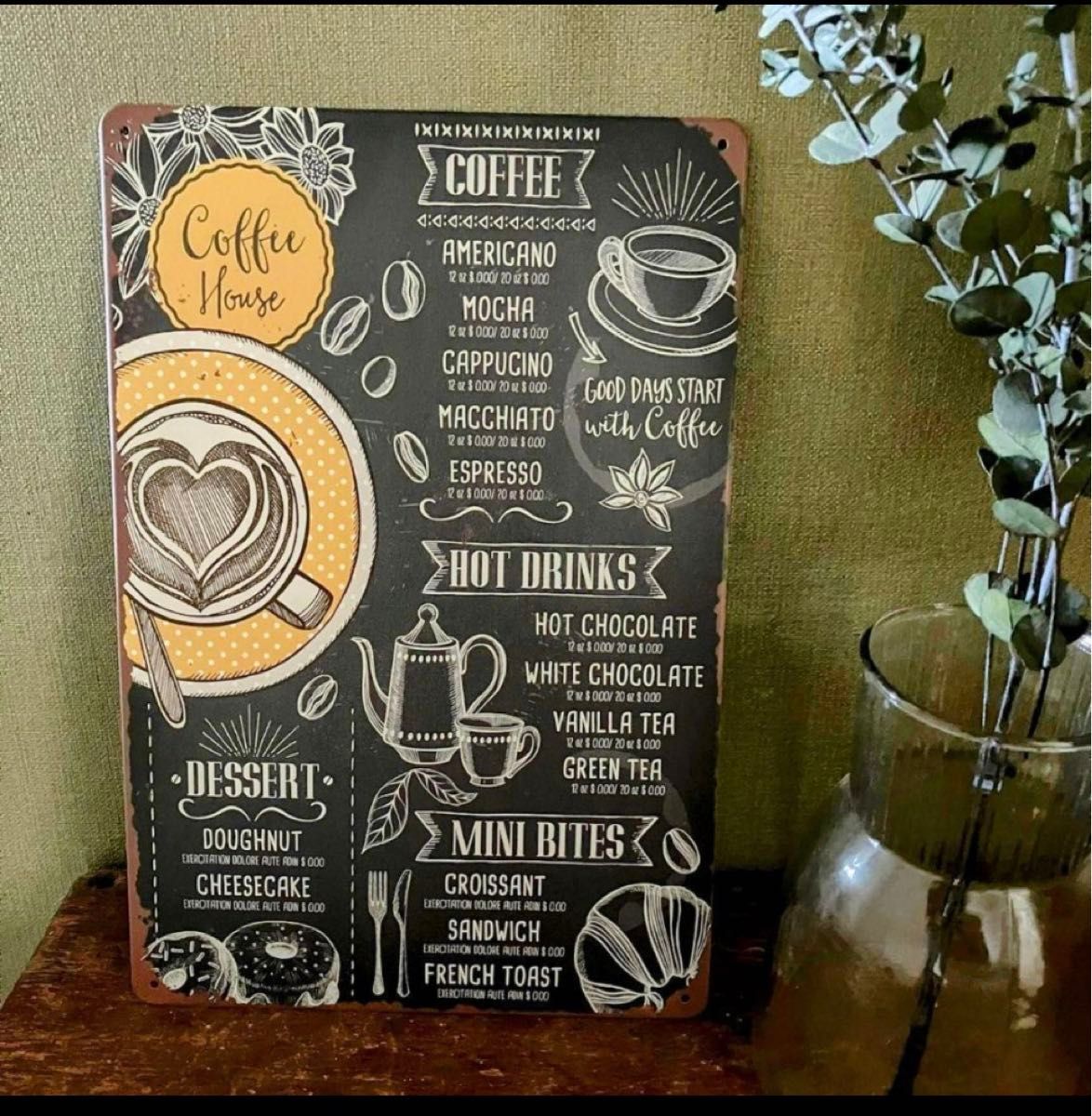 新品 ブリキ看板チョークアート風 看板メニューボードコーヒーカフェ。