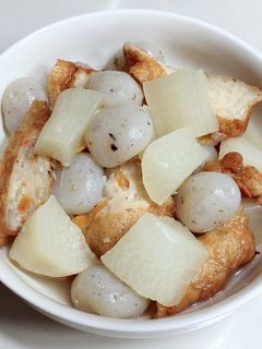 白身魚揚げ がんも と大根のうま煮 #作り置き煮るだけ。