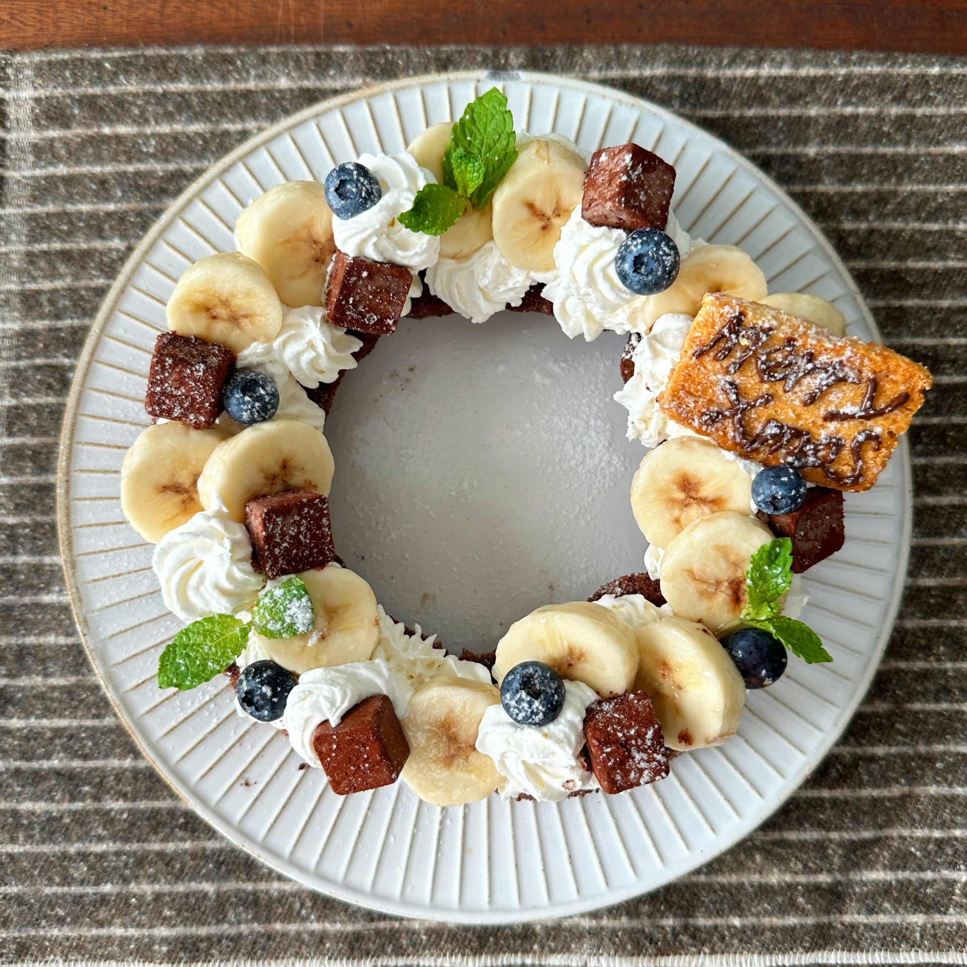 初心者向け プリン入り!いちごとバナナのドームケーキ。