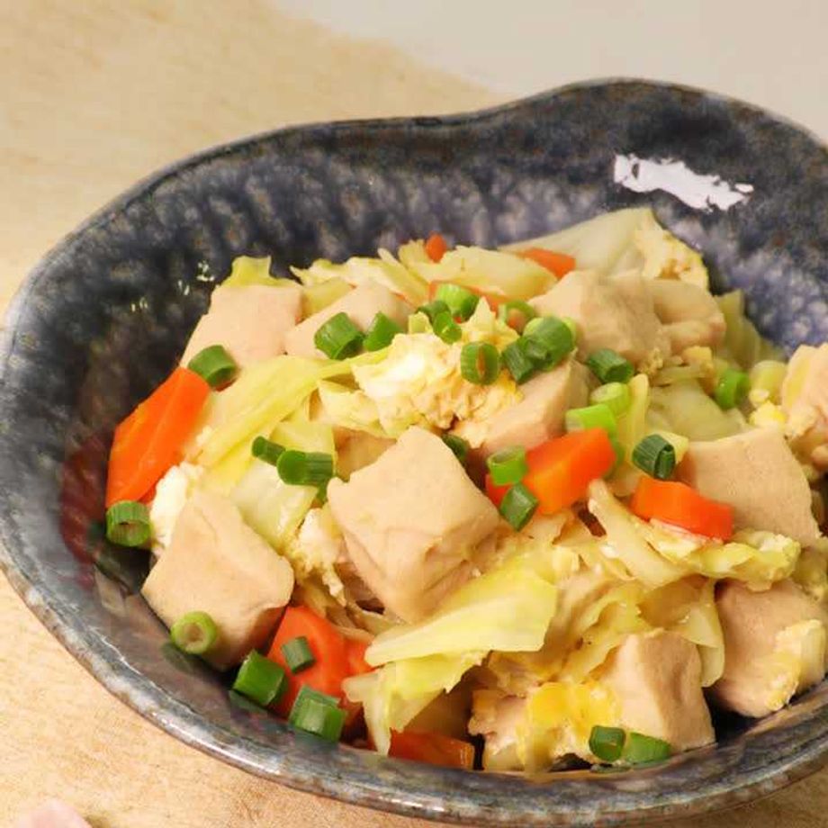 ガツガツいける! 高野豆腐とキャベツの卵とじ。