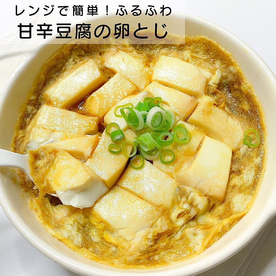 レンジで簡単!ぷるふわ甘辛豆腐の卵とじ。