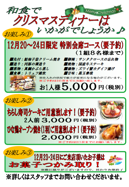 和食でクリスマスディナーはいかがでしょうか♪ - 和食遊処 椿家本店。